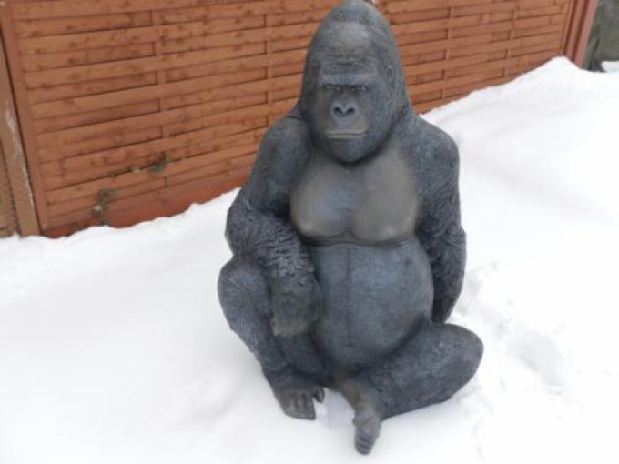 Der Gorilla besteht aus Polyrisin sowie Fliessmatten und ist f?r Innen und Außen geeignet.
